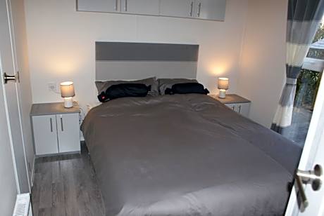 The fireplace is a top feature of this mobile home. Boasting a private entrance, this air-conditioned mobile home comes with 1 living room, 2 separate bedrooms and 2 bathrooms with a shower. In the well-fitted kitchen, guests will find a stovetop, a refrigerator, a dishwasher and kitchenware. Featuring a terrace with garden views, this mobile home also features a tea and coffee maker and a flat-screen TV with satellite channels. The unit has 3 beds.