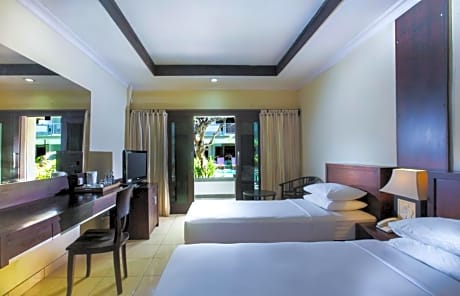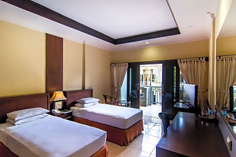 Nos esmeramos en garantizar la comodidad de nuestros huéspedes con servicios y comodidades de primera categoría. Manténgase conectado con sus acompañantes gracias al wifi gratuito disponible durante toda su visita. Para facilitar su llegada y salida, puede reservar el servicio de traslado al aeropuerto con antelación a su llegada. El hotel ofrece taxis para ayudarle a descubrir las atracciones que desea en Bali. El hotel ofrece servicios de recepción, como consigna de equipaje y cajas de seguridad, para garantizar una estancia cómoda. Si lo necesita, el personal de tours puede ayudarle a reservar entradas y eventos de la zona. Su estancia será cómoda gracias al servicio de habitaciones y al servicio de limpieza diario, que le permitirán relajarse y disfrutar. Solo se permite fumar en las zonas designadas por el hotel. Para garantizar el máximo nivel de relajación, las habitaciones presentan un diseño acogedor y están equipadas con todo lo necesario, creando una experiencia de estancia placentera. Para garantizar una estancia placentera, algunas habitaciones del hotel están equipadas con cortinas opacas y aire acondicionado, diseñadas pensando en su comodidad. Varias habitaciones del Hotel Champlung Mas cuentan con balcón o terraza integrados en el diseño. Algunas habitaciones ofrecen entretenimiento como la televisión. Algunas habitaciones cuentan con refrigerador, agua embotellada, cafetera o tetera y minibar. Entendemos la importancia de las instalaciones de baño para la satisfacción de los huéspedes, por lo que algunas habitaciones incluyen secador de pelo y artículos de aseo. Comience el día sin estrés en el Hotel Champlung Mas, ya que el desayuno está disponible en las instalaciones. La excelente oferta gastronómica del hotel garantiza opciones atractivas y de fácil acceso. A su llegada, no se pierda el entretenimiento nocturno en el bar. Disfrute de las actividades de entretenimiento del Hotel Champlung Mas. Relájese y termine cada día con una agradable visita a los servicios de masaje y spa, que le garantizan una experiencia relajante. Relájese junto a la piscina del hotel y disfrute de un momento de relax. Disfrute de una refrescante bebida al aire libre en el bar junto a la piscina, saboreando su bebida favorita.