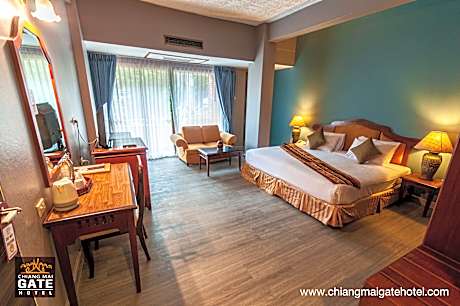 Nos esmeramos en garantizar la comodidad de nuestros huéspedes con servicios y comodidades de primera categoría. Manténgase conectado con sus compañeros gracias al wifi gratuito disponible durante toda su estancia. Para facilitar su llegada y salida, puede reservar el servicio de traslado al aeropuerto con antelación a su llegada. El hotel ofrece servicio de alquiler de coches para ayudarle a descubrir las atracciones que busca en Chiang Mai. Si llega en coche, agradecerá el aparcamiento gratuito del hotel. El hotel ofrece servicios de recepción, como registro de entrada o salida exprés, consigna de equipaje y cajas de seguridad para garantizar una estancia cómoda. Si lo necesita, el servicio de tours puede ayudarle a reservar entradas y eventos de la zona. El hotel también cuenta con una chimenea que crea un ambiente acogedor durante las noches frescas. Su estancia será cómoda gracias al servicio de habitaciones y al servicio de limpieza diario en la habitación, para su relajación y disfrute. Para garantizar el bienestar y la comodidad de todos los visitantes, está estrictamente prohibido fumar en todo el hotel. Solo se permite fumar en las zonas designadas por el hotel. Para garantizar el máximo nivel de relajación, las habitaciones presentan un diseño acogedor y están equipadas con todo lo necesario para una estancia placentera. Para garantizar una estancia placentera, algunas habitaciones del hotel incluyen servicio de ropa de cama, cortinas opacas y aire acondicionado, todo pensado para su comodidad. El Chiangmai Gate Hotel ofrece diversas configuraciones de habitación, algunas con sala de estar independiente y balcón o terraza. En algunas habitaciones, los huéspedes pueden disfrutar de un toque de diversión con la televisión y la televisión por cable. Algunas habitaciones disponen de nevera, agua embotellada, café instantáneo, té instantáneo y minibar. Conscientes de la importancia de las instalaciones de baño para la comodidad de los huéspedes, el hotel ofrece secador de pelo y artículos de aseo en algunas habitaciones. Comience el día sin estrés en el Chiangmai Gate Hotel, ya que el desayuno está disponible en las instalaciones. ¿Qué le parece comenzar cada día de sus vacaciones con una deliciosa taza de café? En el hotel, disfrute del vigorizante sabor de un excelente café recién hecho. La variada y exquisita oferta gastronómica del hotel garantiza opciones atractivas y de fácil acceso. A su llegada, no se pierda el entretenimiento nocturno en el bar. Durante el día, disfrute de las actividades de entretenimiento disponibles en el Chiangmai Gate Hotel. Relájese y termine cada día con una agradable visita a los servicios de masaje y spa, que le garantizan una experiencia relajante. Relájese junto a la piscina del hotel y disfrute de un momento de relax. Disfrute de una refrescante bebida al aire libre en el bar junto a la piscina del hotel, saboreando su bebida favorita.