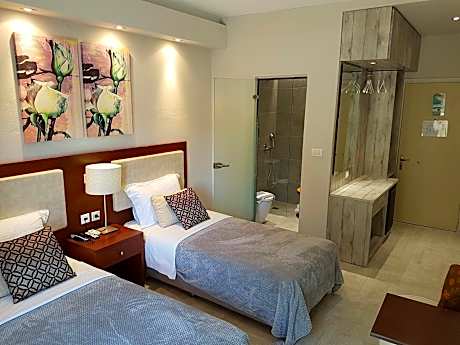 Ideally located in the center of Batsi on the island of Andros, this hotel overlooks the coast and is just by the town’s main beach. Batsi is a peaceful coastal town located on the footstep of a mountain. The Chryssi Akti, Sure Hotel Collection Hotel is a walking distance from the main shops, cafes and restaurants. Recently renovated, the hotel provides a modern interior for its guests. Equipped with a swimming pool and situated in a central location, the Chryssi Akti, Sure Hotel Collection is close to all the main services needed to enjoy a relaxing vacation. The hotel is easily accessible by taxi or bus from the port. The bus stops, with request, right outside of the hotel.