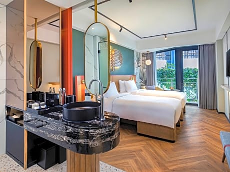 Great care is taken to ensure guests experience comfort through top-notch services and amenities. Remain linked during your visit by utilizing the complimentary internet access available.Prior to your check-in date, you can arrange airport transportation services, guaranteeing a seamless and efficient experience for both arrival and departure.Services offered by taxi and car hire at the hotel ensure effortless exploration of Bali.The hotel offers complimentary parking for guests who arrive with their own mode of transport. Effortlessly plan your daily activities and travel requirements with concierge service, luggage storage and safety deposit boxes provided by the front desk services. During your stay at this fantastic hotel, experience comfort and warmth from the delightful on-site fireplace on those chilly days and nights.For extended visits or whenever required, the laundromat and dry cleaning service ensures your preferred travel garments remain clean and accessible. During leisurely days and evenings, in-room amenities such as room service and daily housekeeping enable you to maximize your stay in the room. In limited designated zones, smoking is exclusively permitted.Crafted for coziness, every guestroom provides an array of features, guaranteeing a tranquil night's sleep while maintaining the level of comfort.For a more enjoyable stay, select rooms at hotel are equipped with blackout curtains and air conditioning.At Tribe Bali Kuta Beach, a selection of rooms can be found that showcase unique design elements such as a balcony or terrace.Expand your in-room entertainment choices with various amenities, such as television offered in certain accommodations.Rest assured that your hydration needs will be met, as some guestrooms are equipped with a coffee or tea maker, bottled water, instant coffee and instant tea. Maintain your cleanliness and comfort using a hair dryer and toiletries available in select guest restrooms. Each morning at Tribe Bali Kuta Beach, a scrumptious, homemade breakfast kick-starts the day.Begin your holiday mornings right with your essential cup of coffee, offered daily at the cafe on-site.During your visit, indulge in a range of delightful culinary choices at hotel to enhance your experience. Experience a fantastic evening effortlessly! Relish an entertaining night without venturing beyond the confines of the bar. Indulge in the numerous pursuits available at Tribe Bali Kuta Beach.During your stay, the hotel provides direct access to a beach, ensuring you remain near the sea throughout your visit. Treat and spoil yourself by stopping at massage and spa for a memorable experience. Begin your holiday perfectly by taking a plunge into the swimming pool.At the hotel, enjoy a laid-back beverage experience by the poolside bar, sipping on a soothing cocktail. Eliminate those holiday calories by stopping by hotel and making use of their well-equipped exercise amenities.
