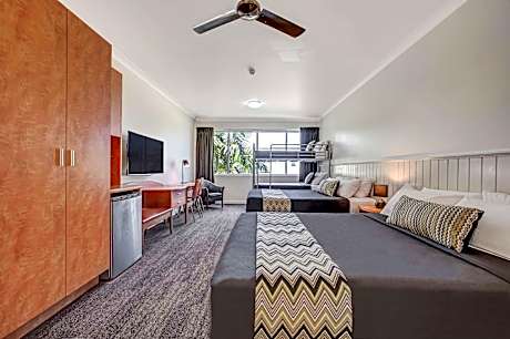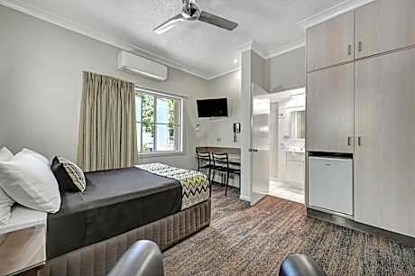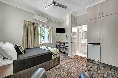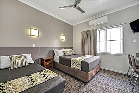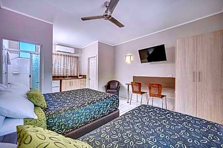 Ubicado en el centro de Townsville, el City Oasis Inn ofrece wifi gratis y habitaciones con aire acondicionado y TV. Sus jardines tropicales cuentan con una piscina estilo laguna, un hot tub climatizado, una cascada y una piscina infantil. El acuario Reef HQ y The Strand se encuentran a 15 minutos a pie del City Oasis. La terminal de ferry de Magnetic Island está a 1,5 km. El aeropuerto de Townsville está a solo 13 minutos en coche del hotel. Todas las habitaciones incluyen baño privado, ventiladores de techo, set de té y café y nevera. Se proporcionan utensilios de planchado. Algunas habitaciones tienen aparcamiento justo en la puerta. La Habitación Doble Estándar - Se admiten mascotas solo admite mascotas con solicitud previa. El Sidewalk Cafe and Bar ofrece un ambiente relajado con mesas en el interior y al aire libre. El café abre de lunes a viernes para el desayuno de 7:00 a 11:00. Cerrado los fines de semana y festivos. También hay zona de barbacoa y servicio de habitaciones. Hay servicio de lavandería y servicio de tintorería el mismo día. También hay un parque infantil.
