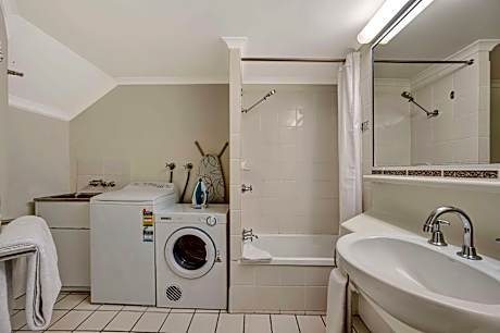 This spacious air-conditioned room features a flat-screen TV, a desk, and kitchenette facilities. It has a private bathroom with a shower over bathtub.