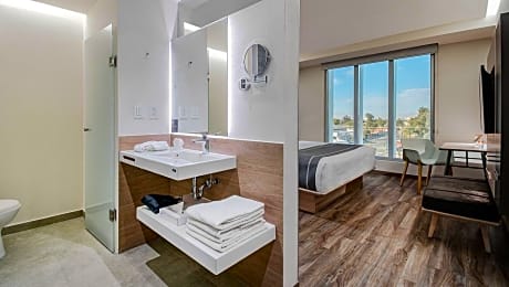 If you’re looking for hotels in Mexicali near the Mexico United States border for business or leisure travel, City Express Plus by Marriott Mexicali welcomes you with personalized service and rooms featuring modern, dynamic spaces that blend design and technology. Start your day energized with a complimentary Continental breakfast or enjoy room service. Work comfortably in our thoughtfully designed spaces, always connected with WiFi. You can also request the meeting room for your business gatherings. During your downtime, relax and unwind by our hotel’s swimming pool. If your visit is for medical tourism or academic purposes, our prime location is near the medical district, the Autonomous University of Baja California, and Mexicali International Airport. Explore Mexicali: visit El Nido Stadium to experience Mexican baseball or dine at one of the restaurants in Mexicali’s Chinatown district. At City Express Plus by Marriott Mexicali, your comfort is our priority.