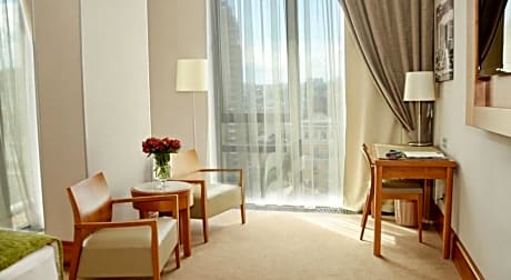 The room features a flat-screen TV, a mini-bar, a tea and coffee making facilities, as well as an air-conditioning and a safe. The bathroom is private and comes with a free toiletries, a bathrobe and a hairdryer.