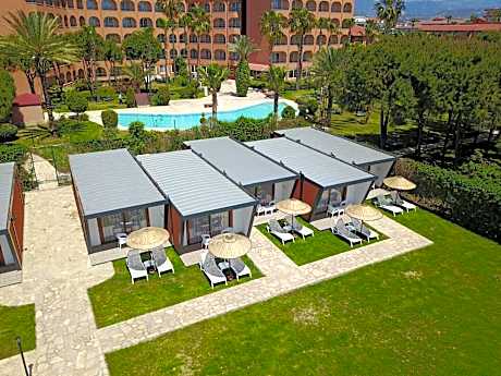 Club Turtas Beach has a seafront location with its private beach, in a green area of the Mediterranean region. The property has outdoor pools, a water slide, and a Turkish bath. All rooms include air conditioning, satellite TV and a mini refrigerator. The rooms offer views of the garden, pool or the Mediterranean Sea. Some rooms also include a balcony. The restaurant of Turtas serves meals in open buffet style. The hotel also has 3 bars and a disco on site. You can benefit from the fitness center, tennis courts, table tennis, basketball or grass football pitch of the hotel. There is also a sauna for relaxation. Alanya Castle is within 11 mi. There is a bus station right next to the hotel. Antalya Airport is 71 mi away.