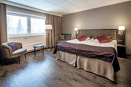 First Hotel Royal lies in central Säffle, only 1640 ft from the Säffle Train Station. It offers free WiFi internet access in all rooms, free private parking and spa facilities. All guest rooms at First Hotel Royal are equipped with cable TV. Some guest rooms offer views of the Byälven River. First Hotel Royal’s spa facilities include a sauna. Guests can also visit the hotel’s gym. In addition to both Swedish and international dishes, the Royal Bar offers a large whiskey selection.