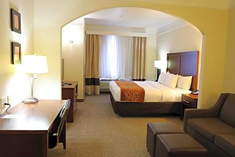 Hotel in Odessa, TX near Ector County Coliseum & More Just off interstate 20, exit 120, the Comfort Inn & Suites, Odessa I-20 hotel in Odessa, Texas is less than nine miles from Midland International Airport. We are also an easy drive to Penwell, TX. This Odessa, TX hotel is also minutes from a number of local points of interest like The Commemorative Air Force, The Presidential Museum and Leadership Library, White-Pool House Museum, Desert Thunder Raceway, Ector County Coliseum The Comfort Inn & Suites, Odessa I-20 hotel offers easy access to a number of outdoor recreation areas, golf courses and entertainment venues in the surrounding area. Several retailers, specialty stores, restaurants and cocktail lounges can be found in the vicinity. Features of this Odessa, TX hotel include free wireless high-speed Internet access, free newspaper, seasonal outdoor pool, exercise room The on-site business center provides guests with access to conveniences like copy and fax services. All rooms have microwaves, refrigerators and desks. Select rooms have sofa sleepers. Coin-operated laundry facilities are located on the premises. Ample free parking is available and can accommodate most cars.