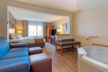 Comfort Inn & Suites Wilkes Barre - Arena hotel is located on Interstate 81, convenient to a number of area businesses, attractions and points of interest like the Mohegan Sun at Pocono Downs casino and racetrack, Mohegan Sun Arena, F.M. Kirby Center for the Performing Arts, Wilkes University and King's College. The Pocono Mountains are just minutes away. Visitors can enjoy browsing the shops at one of the many nearby malls. The Wilkes-Barre / Scranton International Airport is only 14 miles away; contact the hotel for shuttle information. A variety of restaurants can be found in the surrounding area. Taco Bell and a Perkins Restaurant are also located adjacent to this Pennsylvania hotel. Hotel amenities and features include free hot breakfast, free high-speed Internet access in all rooms, free local calls, and free coffee and other hot beverages available 24 hours. There is also the option to use the exercise room or relax in the indoor heated pool. This hotel provides business travelers with a guest computer and access to copy and fax services. All guest rooms feature refrigerators, microwaves, coffee makers, hair dryers, irons and ironing boards. A lit parking lot is on the property.
