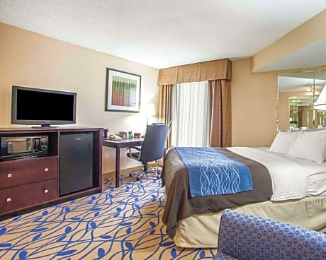 El hotel Comfort Inn, ubicado en el encantador pueblo de Bourbonnais, Illinois, ofrece fácil acceso al campamento de entrenamiento de los Chicago Bears, que se lleva a cabo en el campus de la Universidad Olivet Nazarene. Otras comodidades de este hotel incluyen: acceso gratuito a internet inalámbrico de alta velocidad, periódico gratuito entre semana, café gratuito y gimnasio. Los viajeros de negocios apreciarán el acceso a una computadora con internet y servicios de fotocopias y fax. Su desayuno matutino está repleto de opciones calientes, lo que hace que el desayuno en el Comfort Inn sea la manera perfecta de comenzar el día. Disfrute de nuestro desayuno caliente gratuito con huevos, carne, yogur, fruta fresca, cereales y más, incluyendo su selección de waffles calientes. Todas las espaciosas habitaciones cuentan con televisor de pantalla plana con cable, microondas, refrigerador, secador de pelo, escritorio, cafetera, colchón con acolchado adicional, plancha y tabla de planchar. Algunas habitaciones cuentan con sofá cama y hot tub.