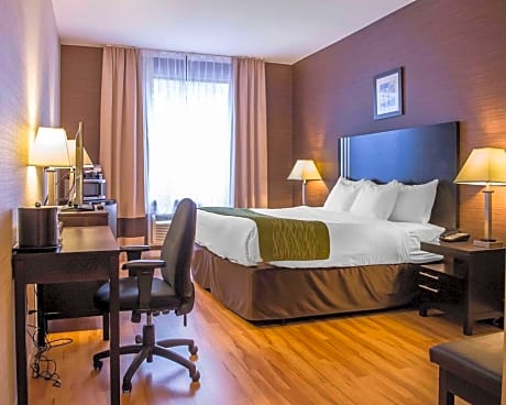 Experience an abundance of unparalleled facilities and features at Comfort Inn. Share your photos and respond to emails at your convenience, thanks to the free Wi-Fi internet access offered by hotel. Visitors can take advantage of complimentary parking directly at the hotel. The accommodating team at the reception will aid you with amenities such as express check-in or check-out. Traveling with minimal baggage is achievable at Comfort Inn, as the hotel's dry cleaning service and laundry service ensures your garments stay fresh. Room amenities feature daily housekeeping, allowing you to unwind and make the most of your visit.The hotel maintains a completely smoke-free zone, providing a breathable atmosphere. Smoking is limited to specified smoking zones. Each accommodation at Comfort Inn is thoughtfully created and adorned to provide visitors with a comfortable, home-like atmosphere.In select rooms of the hotel, guests can enjoy the advantage of having linen service available for their convenience. In select rooms, guests at the hotel can enjoy top-notch in-room entertainment with television, in-room video streaming and cable TV available for their convenience. Rest assured, in a few chosen rooms, you will find the convenience of a refrigerator, a coffee or tea maker, instant tea and mini bar at your disposal. Understanding the significance of bathroom amenities in enhancing guest contentment, the hotel offers a hair dryer within certain chosen rooms. Begin your holiday on a high note. At Comfort Inn, your mornings are greeted with a delightful, free breakfast.Should you prefer not to venture out for a meal, the enticing culinary choices at hotel are always available for your satisfaction.Experience an unforgettable evening with your fellow travelers just a short distance away, at hotel's bar. Throughout the day and evening, grab a bite to eat from hotel's self-service vending machines whenever you please. Should you be particularly discerning in your dining choices, you will surely appreciate having access to the on-site shared kitchen provided at this location.Indulge in the numerous pursuits available at Comfort Inn.Unwind after a long day by stopping by spa and sauna to rejuvenate your senses.Each day at hotel, immerse yourself in the invigorating waters of the pool, perfect for a rejuvenating plunge or a series of revitalizing laps. For individuals who don't want to skip their exercise routine, visiting the hotel fitness center ensures you maintain your vitality and wellness.