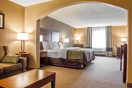 The Comfort Inn Edinburg South hotel, conveniently located near the Museum of South Texas History, Los Lagos Golf Club, McAllen Convention Center, University of Texas-Pan American and the McAllen International Airport. Anzalduas County Park and dam, Santa Ana National Wildlife Refuge and the Mexican border are only minutes away. A paradise for leisure and corporate guests alike, this Edinburg, TX hotel is near many additional attractions, including the Tejano Walk of Fame, Rio Grande Bible Institute and the Pharr International Convention Center. The kids and the kid in you can find plenty to do while shopping, enjoying a professional baseball game at the Edinburg Baseball Stadium, or watching your favorite car race at the Edinburg International Racetrack. Edinburg is also proud to be the Hidalgo county seat. True South Texas hospitality and authentic, elegant Monterrey décor will soothe the traveler's mind in this Edinburg, TX hotel. Guests can enjoy many amenities, including free local calls, an exercise room, meeting rooms and an outdoor pool and hot tub. Enjoy our free hot breakfast featuring eggs, meat, yogurt, fresh fruit, cereal and more. A laundry facility is available for guest use. Business travelers can appreciate conveniences like office desks and voice mail in each room. A business center and access to copy and fax service are also available. Catering services can be arranged for events. Be sure to ask about corporate lodging, group rates and special extended stay rates. All guest rooms have all the amenities of home, including refrigerators and microwaves. Relax in large bathtubs and sleep on Serta Sleeper beds. Irons, ironing boards, coffee makers, hair dryers and cable televisions with HBO are provided in every room. One- and two-bedroom suites are available. Sofa sleepers are available in sitting area suites. Family suites have a kids' bedroom and bunk beds. Whirlpool bathtub suites have a separate bathroom. Nonsmoking rooms can be requested.