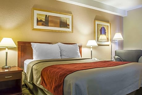 Comfort Inn offers top-notch services and amenities, ensuring guests experience utmost comfort.Maintain seamless communication using the complimentary Wi-Fi at hotel. For visitors traveling by automobile, complimentary parking is available. Reception assistance is offered at the hotel featuring express check-in or check-out.At the hotel, utilize the on-site dry cleaning service and laundry service to maintain your beloved travel attire fresh, allowing you to bring fewer clothes. Craving relaxation? Make the most of your stay at the Comfort Inn with convenient amenities like room service and daily housekeeping at your disposal. Kindly note that smoking is prohibited in the hotel to ensure fresher air for all visitors. At Comfort Inn, every guestroom is provided with convenient amenities and fittings to ensure a comfortable stay. Enhance your experience at hotel with the knowledge that certain rooms are equipped with linen service, blackout curtains and air conditioning for your convenience.Certain rooms boast in-room amusement features such as daily newspaper, television and cable TV, offering guests an enjoyable stay. In select rooms within the hotel, a refrigerator, a coffee or tea maker and mini bar is available to cater to your requirements when desired.In the hotel, certain guest bathrooms come equipped with essential bathroom amenities, such as a hair dryer and toiletries, ensuring a comfortable stay for guests. Begin your day carefree at Comfort Inn, as complimentary breakfast is offered for your convenience.At the hotel, an assortment of easily accessible and delicious meal choices are available to satisfy your appetite whenever it strikes. Enjoy an entertaining evening with your fellow travelers at the hotel's bar. At Comfort Inn, visitors have the option to receive groceries directly in their accommodation, ensuring outstanding comfort and simplicity when it comes to meals. At the hotel, discerning guests can also enjoy on-site culinary facilities like BBQ facilities tailored to their preferences.Comfort Inn provides a superb assortment of leisure amenities for guests to enjoy.Conclude your holiday experience perfectly by visiting hot tub before you depart.Discover the fitness amenities at hotel to maintain your health and strength during your getaway.