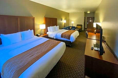 The Comfort Inn Midtown hotel is conveniently located just three miles from the Eagle Creek Sports Complex. The Ruidoso Convention Center, Ski Apache, Ruidoso Downs Race Track and Billy the Kid Casino are minutes from this Ruidoso, NM hotel. The hotel is located in the heart of Ruidoso's midtown shopping district. Guests can walk to shops, restaurants and galleries. Nestled in the tall pines of historic Lincoln County, Ruidoso, New Mexico offers activities for all seasons. The hotel is minutes from golfing, hiking, horseback riding and fishing. While visiting the village of Ruidoso breathe in the fresh mountain air and enjoy the views. Breakfast is full of hot and cold options featuring eggs, meat, yogurt, fresh fruit, cereal and more, including your choice of hot waffle flavors! After a long day of work or play, guests will enjoy unwinding in the indoor heated pool and hot tub. This Ruidoso, NM hotel also features a fitness center and free local calls. Business travelers will appreciate conveniences like free wireless high-speed Internet access in all rooms and the conference room. The business center offers high-speed Internet access and a laser printer. Access to fax and copy services is available at the front desk. All guest rooms are equipped with 32-inch LCD televisions, refrigerators, microwaves, hair dryers, coffee makers, irons and ironing boards. Nonsmoking rooms are offered. Groups and tour busses are welcome.