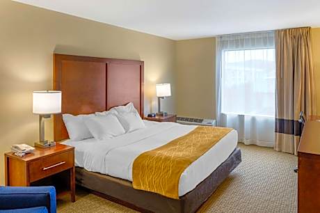 Located just three miles from historic Monticello, the home of Thomas Jefferson, with easy access to Interstate 64 and the U.S. Highway 250 Bypass, the Comfort Inn Monticello is just minutes from the University of Virginia. This hotel is 25 miles from Skyline Drive, a 105-mile road that winds through the mountains of Shenandoah National Park. Charlottesville's historic Downtown Mall and Foxfield Races, where visitors can explore the exciting world of steeplechase racing, are only a short drive away. The Charlottesville-Albemarle Airport is less than 13 miles away. Historic Monticello, the home of Thomas Jefferson, is located on a small mountain overlooking Charlottesville and features tours of the 1809 structure, the gardens and the slave community. Several restaurants are nearby. Guests will enjoy amenities like:Free wireless high-speed Internet access, free weekday newspaper, free local calls and free coffee. Your Morning Breakfast is full of hot options to start your day. Enjoy our free hot breakfast featuring eggs, meat, yogurt and fresh fruit, cereal and more, including your choice of hot waffle flavors. This hotel also features an exercise room, sundeck and a large outdoor pool. Business travelers will appreciate conveniences, including high-speed wireless internet access, spacious work desks and a business center. Banquet and meeting facilities are available for hosting most social gatherings and business functions. All rooms offer refrigerators, coffee makers, hair dryers, irons, ironing boards and safes. Large whirlpool rooms are also available. Smoking rooms are provided upon request. The hotel also features guest laundry facilities.