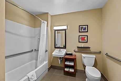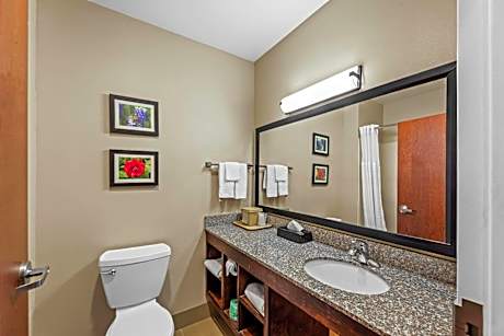 The Comfort Inn & Suites hotel is conveniently located near the Northwest Alabama Regional Airport, the Alabama Music Hall of Fame and Shiloh National Military Park. This Tuscumbia, AL hotel is just minutes from The University of North Alabama and the Wilson Dam of Wilson Reservoir. All tastefully furnished guest rooms at this Tuscumbia, AL hotel include microwaves, refrigerators, coffee makers, spacious desks, hair dryers, irons, ironing boards and cable television. Select rooms also come with whirlpool bathtubs and sofa sleepers. Nonsmoking rooms are offered. Coin-operated laundry facilities are located on the property. Golfing, fishing, hiking, horseback riding and hunting are only some of the many outdoor recreational activities visitors can enjoy in the area. Several restaurants and cocktail lounges surround the hotel. Guests are also invited to enjoy the following full-service amenities and features: Free coffee; Free weekday newspaper; Seasonal outdoor pool; Fitness center Enjoy our free hot breakfast featuring eggs, meat, yogurt, fresh fruit, cereal and more, including your choice of hot waffle flavors! Additional conveniences like free wireless high-speed Internet access and access to copy and fax services will please business travelers.