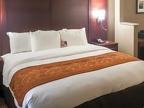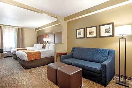 The Comfort Suites Knoxville Airport in Alcoa is located less than one mile from the McGhee Tyson Airport. This Alcoa, TN hotel is convenient to Great Smoky Mountains National Park, Cades Cove, the Knoxville Convention Center, the University of Tennessee and Maryville College. Be sure to visit the neighboring cities of Knoxville, Oak Ridge, Townsend, Pigeon Forge and Gatlinburg. Additional points of interest near this Alcoa, TN hotel include Tuckaleechee Caverns, Neyland Stadium, Blount Memorial Hospital, Alcoa Aluminum and McGhee Tyson Air National Guard Base. Enjoy browsing local museums and a wide variety of specialty shops. There are several restaurants and cocktail lounges located in the surrounding area, many are within walking distance. Full-service features and amenities include free airport transportation; ask about Stay & Fly packages, free high-speed Internet access, free weekday newspaper and free local calls. Enjoy our free hot breakfast featuring eggs, meat, yogurt, fresh fruit,cereal and more. If you're leaving early, a Your Suite Success Grab & Go bag is available for the two hours prior to breakfast. Guests are invited to take advantage of the exercise room or relax in the indoor pool and hot tub. Guest laundry facilities are conveniently located on the property. Business travelers can appreciate oversize desks, voice mail and access to copy and fax services. There is also the convenience of an on-site business center. This Alcoa hotel has meeting facilities available to accommodate most events and business functions. All smoke-free spacious suites have separate living and sleeping areas, microwaves, refrigerators, coffee makers, hair dryers, irons, ironing boards and cable television. Keep your electronic devices charged with the recharge device including AC and USB outlets provided in all guest rooms. Deluxe whirlpool suites feature heart-shaped bathtubs, providing an ideal escape for a romantic getaway.