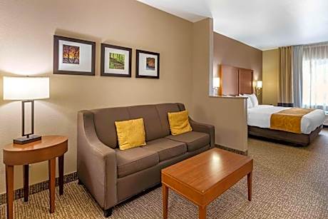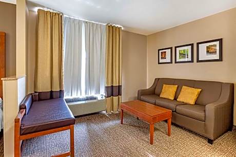 The Comfort Suites Coralville I-80 is located four miles from the University of Iowa, Carver-Hawkeye Arena sports facility, Hancher Auditorium and Kinnick Stadium football field, allowing for convenient access to everything the university has to offer. The hotel is only two miles from the University of Iowa Hospitals and Clinics. The historic utopian society of the Amana Colonies is located just 10 miles away in the rolling hills of Iowa's River Valley. This Coralville, IA hotel is also ideally located only one block from Coral Ridge Mall, providing easy access to shopping, dining and entertainment. Enjoy our free hot breakfast featuring eggs, meat, yogurt, fresh fruit, cereal and more, including your choice of hot waffle flavors! If you're leaving early, a Your Suite Success Grab & Go bag is available for the two hours prior to breakfast. Guests of the Comfort Suites hotel will enjoy the convenience of full-service amenities, including free coffee. This hotel also features a fitness center, indoor heated pool and a hot tub. Business travelers will appreciate conveniences like free wireless high-speed Internet access in all rooms, voice mail and free copies. All suites feature microwaves, refrigerators, coffee makers, hair dryers, irons and ironing boards. Keep your electronic devices charged with the recharge device including AC and USB outlets provided in all guest rooms. This Coralville, IA hotel also offers guest laundry facilities and valet cleaning services for guest convenience. Bus parking is available for groups.