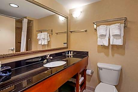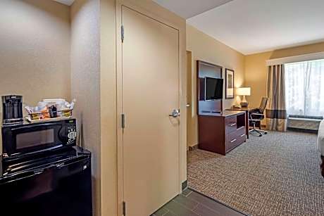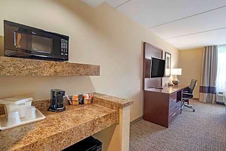 Comfort Suites, a Fredericksburg VA hotel near University of Mary Washington The Comfort Suites hotel is located, close to many popular attractions and historical landmarks. This Fredericksburg, VA hotel is close to the Marine Corps Base Quantico, the FBI Academy, Germanna Community College and the University of Mary Washington. Historic Fredericksburg, Virginia is home to many landmarks, including the Mary Washington House, the Hugh Mercer Apothecary Shop and the National Bank Museum. Retrace Civil War history at four battlefields: Fredericksburg, Chancellorsville, the Wilderness and Spotsylvania Court House, all part of the Fredericksburg and Spotsylvania County Battlefields Memorial National Military Park. Enjoy searching for that must-have item at one of the nearby shopping centers, specialty shops, boutiques and antique stores. A variety of entertainment venues, restaurants and cocktail lounges are nearby. This Fredericksburg, VA hotel offers many fine features and amenities, including free wireless high-speed Internet access, free 24-hour coffee service, free local calls, exercise room, indoor heated saltwater pool, free hot breakfast featuring eggs, meat, yogurt, fresh fruit, cereal and more, including your choice of hot waffle flavors. If you're leaving early, a Your Suite Success Grab & Go bag is available for the two hours prior to breakfast. Business travelers will welcome additional conveniences like in-room desks and access to copy and fax services. The meeting room accommodates up to 60 people for most events, receptions and business functions. All ooms come equipped with refrigerators, microwaves, coffee makers, hair dryers, irons and ironing boards. Keep your electronic devices charged with the recharge device including AC and USB outlets provided in all guest rooms. Ample parking and laundry facilities are provided on the premises for added guest convenience.