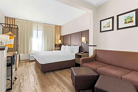 The Comfort Suites Lumberton North hotel is ideally located off Interstate 95, just one mile from Robeson Community College. This hotel is close to several area attractions, including Lumber River State Park, the Carolina Civic Center and Exploration Station children's museum. St. Andrews Presbyterian College is 20 miles away. Be sure to visit South of the Border, a tourist stopping point offering several shops, miniature golf, restaurants and an arcade. Lumberton, North Carolina offers a variety of outdoor recreational activities. Swimming, boating and fishing are available at Luther Britt Park. At the Riverwalk, visitors can walk, jog or bike along the picturesque Lumber River. Visitors will enjoy shopping at the nearby Biggs Park Mall. Golf courses, roller skating rinks, bowling alleys and movie theaters are all located in the surrounding area. A selection of restaurants, specialty shops and cocktail lounges are nearby. Your Morning Breakfast is full of hot options, making breakfast at the Comfort Suites Lumberton North the perfect way to start your day. Enjoy our free hot breakfast featuring eggs, meat, yogurt, fresh fruit, cereal and more, including your choice of hot waffle flavors. If you're leaving early, a Your Suite Success Grab & Go bag is available for the two hours prior to breakfast. Guests of this hotel are invited to enjoy many amenities, including free high-speed Internet access, free local calls, free coffee and free weekday newspaper. Guests will also enjoy relaxing in the seasonal outdoor pool. Guest passes to a premier fitness center in the Lumberton area are available on a first come, first served basis. Business travelers will appreciate conveniences like access to copy and fax services. A meeting room is available for most events and business functions. All guest suites come equipped with microwaves, refrigerators, sleeper by Serta beds, coffee makers, irons, ironing boards, hair dryers, sofa sleepers and cable television. Keep your electronic devices charged with the recharge device including AC and USB outlets provided in all guest rooms. Valet cleaning services are offered for guest convenience.