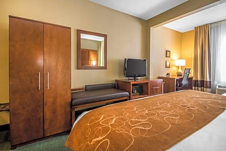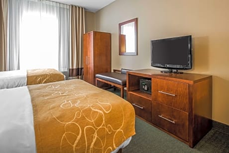 The Comfort Suites hotel is located just 10 miles from the Alliant Energy Center and the Overture Center for the Arts. This Madison, WI hotel is conveniently located near the University Research Park, Camp Randall Stadium, the Monona Terrace Community and Convention Center and the Kohl Center at the University of Wisconsin-Madison. The Dane County Regional Airport is only 20 miles away. Located in the Old Sauk Trails business park on Madison's west side near Middleton, the hotel is one mile from TDS Telecom headquarters, TomoTherapy Incorporated headquarters, American Girl headquarters and Electronic Theater Controls (ETC). The hotel is also within 10 minutes of Epic Systems Corporation training center, Spectrum Brands North American Headquarters Global Operations and Technology, and the CUNA Mutual Group Corporate Headquarters. Additional attractions within 50 miles include House on the Rock, Wisconsin Dells, Cave of the Mounds, Ho-Chunk Casino and Taliesin, the summer home of Frank Lloyd Wright. This Madison, WI hotel features a free cocktail hour Monday through Saturday in Duffy's Pub and Wine Bar located on site. Guests can also enjoy the fitness center, indoor pool with hot tub and the game room. Enjoy our free hot breakfast featuring eggs, meat, yogurt, fresh fruit, cereal and more. If you're leaving early, a Your Suite Success Grab & Go bag is available for the two hours prior to breakfast. Superior full-service amenities include free airport transportation, free local calls, free weekday newspaper and free high-speed Internet access. Business travelers can appreciate conveniences like voice mail and access to copy and fax services. There is also a meeting room that can accommodate up to 85 people. The hotel has several suites to choose from, including whirlpool suites and two-story suites with room for the entire family. All suites come equipped with microwaves, refrigerators, coffee makers and safes. Keep your electronic devices charged with the recharge device including AC and USB outlets provided in all guest rooms. Other amenities include room service, on-site laundry facilities and dry cleaning service.