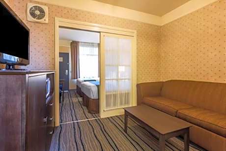 Located in the heart of San Diego, Ramada Suites by Wyndham San Diego is just 10 minutes from San Diego International Airport, Old Town San Diego, the Gaslamp Quarter and the Port of San Diego. Free WiFi is available in all suites. The hotel's 2-room suites feature a private bedroom with a king or 2 double beds and a living room separated by French doors. These rooms also include a sofa bed, a microwave, a refrigerator and 2 flat-screen TVs. The hotel’s kids' suites include a private room with bunk beds, flat-screen televisions and an activity table. The parents' bedroom is separated by French doors and includes king beds and flat-screen televisions. These suites include a microwave, a refrigerator, a coffee machine and a hairdryers. Guests can their electronic devices charged with the recharge device including AC and USB outlets provided in all guest rooms. Ramada Suites by Wyndham San Diego features an outdoor heated pool and a hot tub. An exercise room and a business center are also provided to guests. SeaWorld San Diego and the San Diego Zoo are both within 4 miles of this hotel. Mission Beach and Coronado Beach are both less than 10 miles from this California hotel. Riverwalk Golf Club and Fashion Valley mall are just 2 miles away.