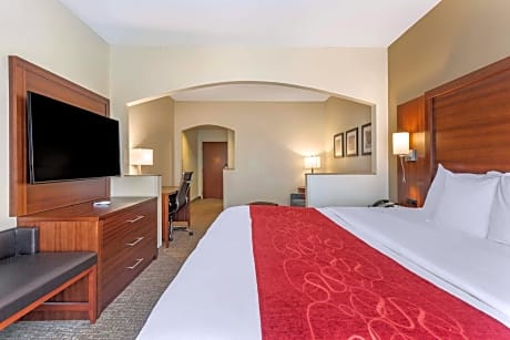 The Comfort Suites Southaven I-55 is conveniently located off Interstate 55 and Highway 302. This hotel is seven miles from Memphis International Airport (MEM) and is within minutes from the DeSoto Civic Center, Graceland, downtown Memphis, FedExForum and the Tunica Casinos. Baptist Memorial Hospital-DeSoto, Southaven Towne Center Mall, Snowden Grove Park and Latimer Park are all nearby. Enjoy a selection of over 60 restaurants within five miles of this hotel. Your Morning Breakfast is full of hot options to start your day. Enjoy our free hot breakfast featuring eggs, meat, yogurt, fresh fruit, cereal and more, including your choice of hot waffle flavors. If you're leaving early, a Your Suite Success Grab & Go bag is available for the two hours prior to breakfast. Guests of the hotel will enjoy the manager's reception Monday through Thursday evenings with free beer, wine, sodas and hot snack items. Additional amenities and features include free local calls and free weekday and weekend newspapers. Be invigorated with a workout in the fitness center and enjoy the seasonal outdoor pool. Long-term stay guests and families will appreciate the coin-operated laundry facilities. Business travelers will appreciate conveniences like free wired and wireless high-speed Internet access and a business center with access to fax and copy services. A conference suite and a 830 square foot meeting room are located on the property; some audio/visual equipment is provided. All of our spacious suites include sitting areas, large work desks, sofa sleepers, coffee makers, microwaves, refrigerators, wet bars, irons, ironing boards, hair dryers and cable television . Keep your electronic devices charged with the recharge device including AC and USB outlets provided in all guest rooms. The executive suites have whirlpool bathtubs, separate king bedrooms and lofty living rooms.