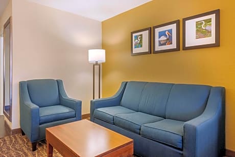 The Comfort Suites hotel, in Sumter County features a business center and fitness center. It is near area attractions like Lake Griffin State Park, Spanish Springs Town Square, Grand Oaks Resort, The Big House and the Savannah Center. The hotel guests are invited to enjoy many amenities, including free local calls, a free weekday newspaper, free parking and free coffee in the lobby. The spacious guest rooms include refrigerators, microwaves, irons, ironing boards and hair dryers. Pets are welcome for a nightly fee. There are laundry facilities on site for guest convenience. Breakfast features eggs, meat, yogurt, fresh fruit, cereal and more, including your choice of hot waffle flavors! If you're leaving early, a Grab & Go bag is available during the two hours before breakfast starts. The hotel is walking distance from many shops and restaurants. Chili's Grill & Bar is on the premises. Business travelers will appreciate many conveniences like high-speed Internet access in all rooms, voice mail, access to fax services, and three meeting rooms which can accommodate up to 100 people for most events and functions. The Leesburg International Airport is 13 miles from the hotel. The hotel is also close to many popular Florida attractions, including: Walt Disney World, Epcot, Disney-MGM Studios, Disney's Animal Kingdom, Universal Studios Florida. A chain of lakes is also nearby.