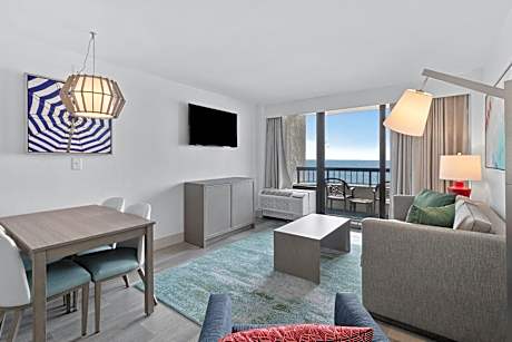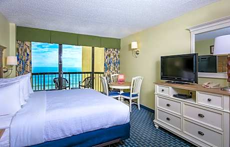 Located 1.9 mi from the Myrtle Beach Boardwalk, this Myrtle Beach hotel overlooks the Atlantic Ocean and features a seasonal outdoor pool area with a lazy river, water slide, and kid's pool. A balcony with an ocean view is provided with every room. Free WiFi, a refrigerator, and a cable TV are standard in each Compass Cove room. Some rooms include an oceanfront view, full kitchen, and separate living area. The Compass Rose serves a daily traditional southern breakfast buffet. The Tiki Hut is located near the pools and serves iced drinks. Guests can also enjoy an oceanfront meal at The Crow's Nest Restaurant. Guests at the Compass can relax at the full-service spa, get a souvenir at the gift shop or play in the game room. The hotel features a shuffle board court and billiards. The Cove is within 5 minutes' drive of Myrtle Beach State Park, with access to the beach. The Family Kingdom Amusement Park is 1 mi from the property.