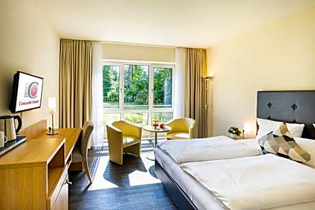 Set in Kronberg im Taunus in the Hessen Region, 9.3 mi from Frankfurt/Main, Concorde Hotel Viktoria features a terrace and views of the garden. Guests can enjoy the on-site bar. Free WiFi is provided and free private parking is available on site. Rooms are fitted with a flat-screen TV with cable channels. Some rooms have a seating area to relax in after a busy day. Rooms include a private bathroom fitted with a shower and a hairdryer. You can play mini-golf at the hotel. Wiesbaden is 14 mi from Concorde Hotel Viktoria, while Mainz is 17 mi from the property. The nearest airport is Frankfurt Airport, 9.9 mi from the property.