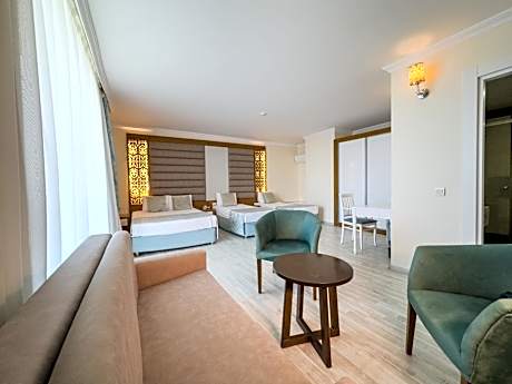 Concordia Celes Beach Hotel has a fitness center, garden, a private beach area and shared lounge in Okurcalar. Among the various facilities of this property are a terrace, a bar and water sports facilities. The hotel has an outdoor swimming pool, indoor pool, karaoke and a kids' club. The hotel will provide guests with air-conditioned rooms offering a closet, a safety deposit box, a flat-screen TV, a balcony and a private bathroom with a shower. All rooms will provide guests with a minibar. A buffet, continental or Full English/Irish breakfast is served at the property. At Concordia Celes Beach Hotel you'll find a restaurant serving Chinese, Mediterranean and Pizza cuisine. Vegetarian, dairy-free and halal options can also be requested. The wellness area at the accommodation is comprised of a sauna and a hammam. You can play pool, table tennis and darts at this 5-star hotel, and the area is popular for fishing and cycling. Languages spoken at the 24-hour front desk include Arabic, German, English and Russian. Okurcalar Beach is a 3-minute walk from Concordia Celes Beach Hotel, while Historical Alarahan is 8.9 miles away. Gazipaşa-Alanya Airport is 47 miles from the property, and the property offers a paid airport shuttle service.