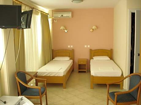 Simply furnished room with air conditioning and heating. It also has a flat-screen TV with satellite channels. Hairdryer available on request.