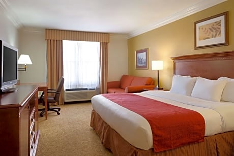 This Nashville Country Inn & Suites by Radisson is less than 5 minutes' drive from The Grand Ole Opry and Bass Pro Shops. It offers a continental breakfast with a few hot items, a seasonal outdoor pool, and free WiFi. The breakfast includes a selection of eggs, sausage, and bacon is every morning at the Opryland North Country Inn and Suites by Radisson. A 32-inch flat-screen TV, microwave, and refrigerator are provided in each room at this Nashville Country Inn and Suites. Rooms are decorated in rich reds and golds and also include a work desk and a coffee machine. The business center is located off of the lobby and laundry facilities are available 24 hours a day. Guests can also relax and read a book in the common library on site. Downtown Nashville, Tennessee is 9.9 mi from the hotel. Nashville International Airport is 10 minutes' drive from the hotel.