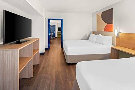 We would be delighted to welcome you to the Spark By Hilton Woodbridge. Our hotel is ideally located just off I-95, making it a perfect starting point for your Northern Virginia adventures. Indulge in a shopping experience at Potomac Mills or Stonebridge at Potomac Town Center, both located approximately 5 minutes away, or savor a meal at one of the numerous dining options within a 10-minute radius. The Marine Corps Base at Quantico is just 10 miles away. Another popular option is the Leesylvania State Park, which is just 6.9 miles away. All guest rooms at Spark By Hilton Woodbridge include the following amenities: A 50" flat screen TV with access to various streaming platforms as well as cable tv, microwave, refrigerator, business desk featuring a universal swivel function and a comfort support chair, as well as multiple charging stations that feature both wireless and wired charging capabilities. Free high speed Wi-Fi is available throughout the property. On the ground floor, guests have access to our 24-hr fitness center and guest laundry. You can also take advantage of our indoor heated pool, which is open from: 8AM - 10PM. Our check in time is: 3:00 PM and check out is at: 12:00 PM. Please note: guests with pets are welcome but will be charged a $75.00 pet fee for stays between 1 - 4 nights. Guests with a pet that stay for 5 nights or more will be charged a $125 pet fee. We cannot wait to welcome you to our hotel, because here at Spark, when we shine, you shine!