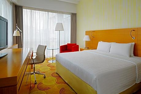 The Courtyard Budapest City Center enjoys a convenient location in the center of the city, on Blaha Lujza Square with its metro, bus and tram stops. Each room in the Courtyard Budapest City Center offers high-speed wireless internet access, a well-lit work desk and an ergonomic chair. Tea and coffee making facilities can be found in every room as well. The Oléo Pazzo Mediterranean bistro, awaits you for breakfast, lunch and dinner. When you are in a hurry, you can visit The Market Shop for a snack, open 24 hours a day. You can leave your car in the Courtyard Budapest City Center's car park.