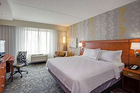 Courtyard Farmingdale is located within Long Island’s Republic Airport grounds and provides its guests with a 24-hour fitness center. The spacious rooms at Courtyard Republic Airport Long Island/Farmingdale are equipped with free Wi-Fi access, SMART TV, Mini Fridge & Coffee Maker. Furnishings include a large work station with ergonomic chair. The Courtyard Bistro is your food & beverage destination for refreshing breakfast choices in the morning and a variety of dinner and cocktail options in the evening. The Bistro also offers specialty beverages made with Starbucks coffee to help you get a jump on the day. Guests can unwind at the lobby bar, sip drinks at the outdoor open fire pit or shop for snacks and refreshments at The Market, open 24/7. Popular attractions nearby the Courtyard Republic Airport Long Island include the Jones & Robert Moses Beaches, Adventureland Amusement Park, Farmingdale State College and the Village of Farmingdale. New York City is a 50-minute drive away or quick LIRR train ride. Free parking is available on site.