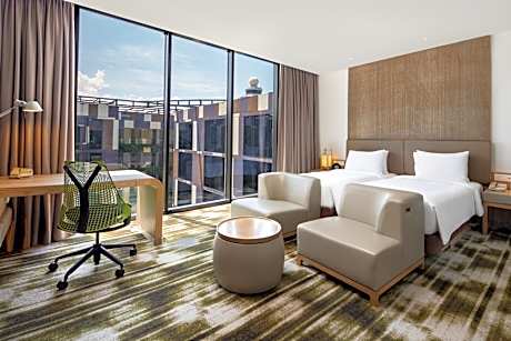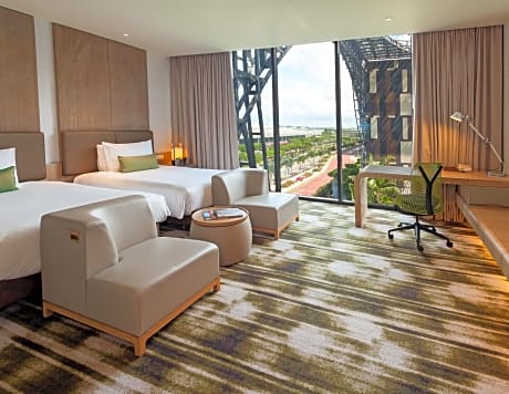 Disfrute de una gran cantidad de instalaciones y servicios incomparables en Crowne Plaza Changi Airport. Comparta sus fotos y responda a los correos electrónicos cuando lo desee, gracias al acceso a Internet Wi-Fi gratuito que ofrece el hotel. Si necesita transporte desde o hacia el aeropuerto, el hotel puede organizarlo antes de su fecha de llegada. Los visitantes pueden aprovechar las opciones de estacionamiento accesibles directamente en el hotel. El hotel mantiene una zona completamente libre de humo, lo que proporciona un ambiente respirable. Se permite fumar en zonas específicas para fumadores. Cada alojamiento en Crowne Plaza Changi Airport está cuidadosamente diseñado y decorado para brindar a los visitantes un ambiente cómodo y hogareño. Sumérjase en el salón ejecutivo, donde lo esperan comodidades excepcionales y un entorno lujoso. Embárquese en su experiencia de vacaciones de la manera más ideal. Comience cada mañana de su visita con un desayuno en el hotel. Si prefiere no salir a comer, las tentadoras opciones culinarias del hotel siempre están disponibles para su satisfacción. Para aquellos que prefieren saborear las comidas en su espacio personal, Crowne Plaza Changi Airport ofrece la comodidad de la entrega de comestibles a domicilio, lo que le permite preparar y disfrutar de la comida en su habitación. Disfrute de las numerosas actividades disponibles en Crowne Plaza Changi Airport. Cada día en el hotel, sumérjase en las vigorizantes aguas de la piscina, perfectas para un chapuzón rejuvenecedor o una serie de largos revitalizantes. Para las personas que no quieren saltarse su rutina de ejercicios, visitar el gimnasio del hotel le asegura mantener su vitalidad y bienestar.