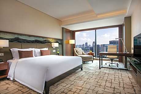 Great care is taken to ensure guests experience comfort through top-notch services and amenities. Remain linked during your visit by utilizing the complimentary internet access available.Prior to your check-in date, you can arrange airport transportation services, guaranteeing a seamless and efficient experience for both arrival and departure.Services offered by taxi and car hire at the hotel ensure effortless exploration of Jinan.The hotel offers complimentary parking for guests who arrive with their own mode of transport. Effortlessly plan your daily activities and travel requirements with concierge service, express check-in or check-out, luggage storage and safety deposit boxes provided by the front desk services.Securing passes to the city's top attractions is simple with the hotel's ticket service and tours.For extended visits or whenever required, the dry cleaning service and laundry service ensures your preferred travel garments remain clean and accessible. During leisurely days and evenings, in-room amenities such as 24-hour room service, room service and daily housekeeping enable you to maximize your stay in the room. For minor or impromptu requirements, the convenience stores can promptly cater to them without the necessity of stepping out from the hotel.The hotel is completely smoke-free.In limited designated zones, smoking is exclusively permitted.Crafted for coziness, every guestroom provides an array of features, guaranteeing a tranquil night's sleep while maintaining the level of comfort. For a more enjoyable stay, select rooms at hotel are equipped with linen service, blackout curtains and air conditioning. At Intercontinental Jinan City Center, a selection of rooms can be found that showcase unique design elements such as a separate living room.For certain chosen rooms, guests can enjoy in-room amusement like daily newspaper, television and cable TV as a part of their stay. Rest assured that your hydration needs will be met, as some guestrooms are equipped with a refrigerator, bottled water, a coffee or tea maker, instant coffee, instant tea and mini bar. It is worth noting that certain guest bathrooms feature a hair dryer, toiletries and bathrobes for your convenience. Chosen accommodation prices might include entry to the executive lounge, offering premium services amid an ambiance of refined extravagance. Each morning at Intercontinental Jinan City Center, a scrumptious, homemade breakfast kick-starts the day.Begin your holiday mornings right with your essential cup of coffee, offered daily at the cafe on-site.During your visit, indulge in a range of delightful culinary choices at hotel to enhance your experience.Experience a fantastic evening effortlessly! Relish an entertaining night without venturing beyond the confines of the bar. Experience unparalleled comfort as groceries can be brought right to your room at Intercontinental Jinan City Center through their distinctive delivery assistance. Do you possess exceptional culinary skills? Prepare your meals personally within the hotel at its BBQ facilities. Indulge in the numerous pursuits available at Intercontinental Jinan City Center.Treat and spoil yourself by stopping at massage, salon, steam room, spa and sauna for a memorable experience.Begin your holiday perfectly by taking a plunge into the swimming pool.Eliminate those holiday calories by stopping by hotel and making use of their well-equipped exercise amenities.