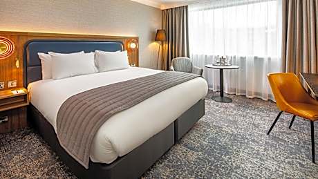 Este hotel de 4 estrellas, recientemente reformado, se encuentra en una ubicación privilegiada dentro del complejo aeroportuario, a 20 minutos en coche del centro de la ciudad. El Crowne Plaza Manchester Airport cuenta con cómodas habitaciones con aire acondicionado, TV de pantalla plana, sábanas de algodón egipcio y baño privado completo. El servicio de habitaciones está disponible las 24 horas. El elegante bar del hotel ofrece cocina moderna en un ambiente relajado e informal, con cócteles, aperitivos y aperitivos. Los huéspedes pueden relajarse o hacer ejercicio en el gimnasio del hotel. La M56 está a menos de 5 minutos en coche, y la M60 a solo 5 minutos más. El aeropuerto de Manchester está a 10 minutos a pie del hotel; los trenes al centro de la ciudad salen cada 10 minutos. Hay un servicio de autobús lanzadera diario, operado por CPP, desde el hotel hasta el aeropuerto de Manchester. Horario: 3:00 - 21:00 h. Muy práctico e ideal si se aloja con nosotros y vuela desde y hacia el aeropuerto de Manchester.