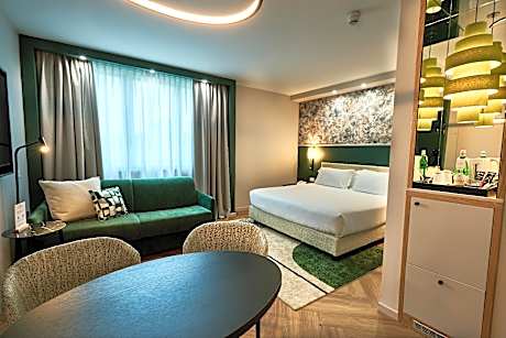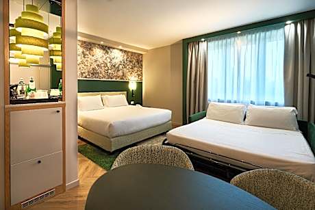 The Crowne Plaza is a luxury hotel at the Padova Ovest exit of the A4 Motorway, 15 minutes' drive from Padua center by bus. It offers a parking, a gym and Wi-Fi, all free. Rooms at Crowne Plaza Padova are spacious and modern with large work areas and a laptop safe. They feature a TV with satellite and pay-per-view channels, bathrobes and slippers. Aquattro restaurant serves traditional Italian cuisine, seasonal specialties and a wide choice of wines from the Veneto region. The hotel is 1640 feet from the Limena industrial area and 15 minutes' drive from the PadovaFiere convention center. Padua's volleyball, rugby and football stadiums are all less than 15 minutes away by car.
