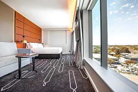 Ubicado a solo 5 minutos en coche del Aeropuerto de Sídney, el Crowne Plaza Sydney Airport, un hotel IHG, ofrece servicio privado de traslado al aeropuerto y aparcamiento seguro. Alójese cerca de las terminales nacionales e internacionales de Sídney en alojamientos con canales por cable y aire acondicionado. Hay wifi gratis en todo el establecimiento. El Crowne Plaza Sydney Airport, un hotel IHG, se encuentra a solo 450 metros de la estación de tren de Mascot y a solo 15 minutos en tren del centro de Sídney y de la famosa Ópera de Sídney. Todas las habitaciones disponen de TV de pantalla plana y set de té y café. Los baños privados incluyen secador de pelo y artículos de aseo. El servicio de habitaciones está disponible las 24 horas, los 7 días de la semana. El servicio de traslado al aeropuerto está disponible para los huéspedes los 7 días de la semana, desde y hacia las terminales nacionales e internacionales del Aeropuerto de Sídney. El Crowne Plaza Sydney Airport, un hotel IHG, colabora con un proveedor externo, cuyos precios parten de 12 USD por persona y trayecto. Los huéspedes pueden usar la sauna o hacer ejercicio en el gimnasio del hotel. El Crowne Plaza Sydney Airport, un hotel IHG, cuenta con recepción 24 horas y centro de negocios.