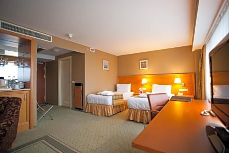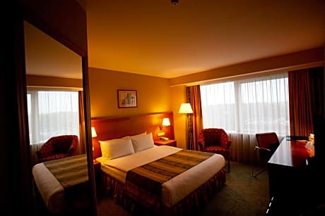 Centrally located 4+ stars VILNIUS PARK PLAZA HOTEL, Restaurant & Terrace, Panorama Bar, Conference & Banquet Center hotel is set between the business area of the city and the Old Town. Complimentary access to WiFi is available for all hotel guests. Rooms feature air conditioning, flat screen TV, safe, as well as tea and coffee-making facilities. Breakfast buffet is daily served in the restaurant Sezonai. Panoramic restaurant Horizontas offers a variety of A la carte dishes and open views of the city. Guests can enjoy healthy cocktails in lobby bar or summer terrace. Private car parking is available at hotel. Vilnius International Airport is 4.3 mi and International train and bus station 1.9 mi away from the hotel.