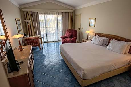Ecotel Dahab Bay View Resort offers 4-star accommodations in Dahab and has an outdoor swimming pool, fitness center and garden. Among the facilities of this property are a restaurant, a kids' club and a shared lounge, along with free WiFi. The accommodations offers room service, an ATM and currency exchange for guests. At the resort the rooms are equipped with air conditioning, a desk, a flat-screen TV, a private bathroom, bed linen, towels and a terrace with a sea view. Ecotel Dahab Bay View Resort provides some units with mountain views, and every room has a balcony. All guest rooms will provide guests with a wardrobe and a kettle. The accommodations offers a buffet or halal breakfast. Ecotel Dahab Bay View Resort offers a children's playground. You can play table tennis, darts and tennis at this 4-star resort, and the area is popular for snorkeling. Speaking Arabic, German, English and Italian, staff are willing to help at the 24-hour front desk. The nearest airport is Sharm el-Sheikh International, 60 mi from the resort, and the property offers a paid airport shuttle service.
