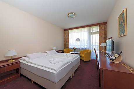 Ensana Esplanade is located in the pleasant green and tranquil environment of the park, in the central part of Piestany's spa island. Free WiFi is available. Within the hotel you can find the new water and sauna world, indoor and outdoor pools with various water attractions including massage jets, hot tubs, and deckchairs. Guests can take relaxing strolls through the on-site shopping passages, sit back in the cozy coffee bar or enjoy musical entertainment in the night bar. A wide range of local and international cuisine including dietary meals is offered in the hotel restaurants and on the inviting terrace. Ensana Esplanade is directly connected to the Balneo Rehabilitation Center where a large number of curative treatments is offered.