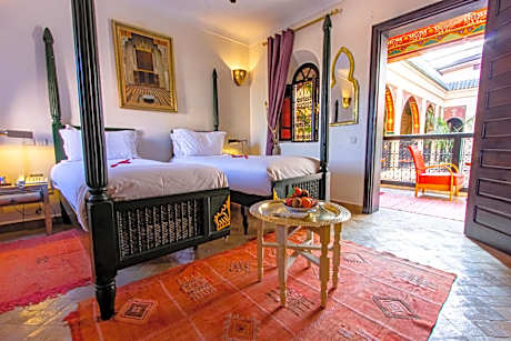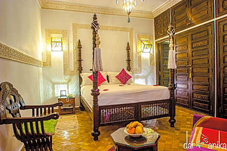 With a courtyard swimming pool and a terrace with views of the medina, this riad offers air-conditioned rooms a 5-minute walk from Jamaâ El Fna Square. The Bahia Palace is 1476 feet away. Guest rooms at Riad Dar Anika have a traditional Moroccan decor and are equipped with free Wi-Fi access. A welcome pack with mineral water and Moroccan pastries is offered in each room upon arrival. A Moroccan breakfast with fresh fruit and cakes can be enjoyed on the terrace. Guests can also sample traditional Moroccan dishes. Staff cater to guests’ needs 24 hours a day. Additional facilities at the Riad include a lounge with a TV and fireplace. License Number(s): 40000MH1360