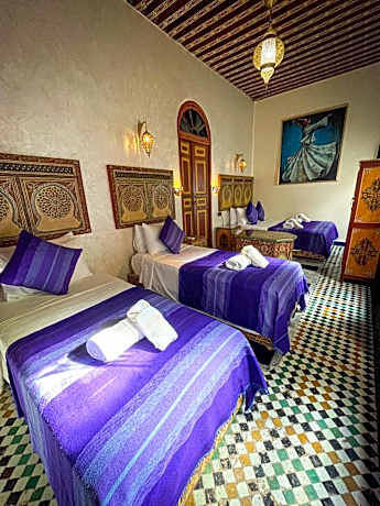 Riad Dar El Ouedghiri is located in Fes within the Medina. Guests can relax in the Moroccan lounge on the terrace with a view of the Medina or enjoy a meal at the on-site restaurant. The rooms feature Moroccan architecture and are decorated with traditional Moroccan tiles. Each room is air-conditioned and has an private bathroom. A continental breakfast is served every day. Guests can enjoy traditional Moroccan cuisine in the restaurant. Riad Dar El Ouedghiri is a 5-minute walk away from the Cour d’appel and Lalla Bus Stops, and a 20-minute drive from the Fes Saiss Airport. The hosts can arrange excursions of the Medina and Fes city center.