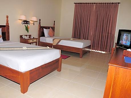 Dara Reang Sey Angkor Hotel provides flawless service and all the necessary facilities for visitors. Remain linked during your visit by utilizing the complimentary internet access available. Prior to your check-in date, you can arrange airport transportation services, guaranteeing a seamless and efficient experience for both arrival and departure. Services offered by taxi, car hire and shuttle at the hotel ensure effortless exploration of Siem Reap. The hotel offers complimentary parking for guests who arrive with their own mode of transport.Effortlessly plan your daily activities and travel requirements with concierge service, express check-in or check-out, luggage storage and safety deposit boxes provided by the front desk services. Securing passes to the city's top attractions is simple with the hotel's ticket service and tours.For extended visits or whenever required, the dry cleaning service and laundry service ensures your preferred travel garments remain clean and accessible. During leisurely days and evenings, in-room amenities such as room service and daily housekeeping enable you to maximize your stay in the room. The hotel is completely smoke-free. In limited designated zones, smoking is exclusively permitted.Crafted for coziness, every guestroom provides an array of features, guaranteeing a tranquil night's sleep while maintaining the level of comfort.For an elevated experience at hotel, select rooms are equipped with air conditioning to improve your stay.At Dara Reang Sey Angkor Hotel, a selection of rooms can be found that showcase unique design elements such as a balcony or terrace. For certain chosen rooms, guests can enjoy in-room amusement like daily newspaper, television and cable TV as a part of their stay.Rest assured that your hydration needs will be met, as some guestrooms are equipped with a refrigerator, a coffee or tea maker, bottled water and mini bar.It is worth noting that certain guest bathrooms feature a hair dryer and bathrobes for your convenience.Chosen accommodation prices might include entry to the executive lounge, offering premium services amid an ambiance of refined extravagance. Each morning at Dara Reang Sey Angkor Hotel, a scrumptious, homemade breakfast kick-starts the day. Begin your holiday mornings right with your essential cup of coffee, offered daily at the cafe on-site. During your visit, indulge in a range of delightful culinary choices at hotel to enhance your experience. Experience a fantastic evening effortlessly! Relish an entertaining night without venturing beyond the confines of the bar.Do you possess exceptional culinary skills? Prepare your meals personally within the hotel at its BBQ facilities.During your stay at hotel, an array of engaging activities and amenities guarantees a delightful experience. Treat and spoil yourself by stopping at massage, spa and sauna for a memorable experience.Begin your holiday perfectly by taking a plunge into the swimming pool.At the hotel, enjoy a laid-back beverage experience by the poolside bar, sipping on a soothing cocktail. Eliminate those holiday calories by stopping by hotel and making use of their well-equipped exercise amenities.