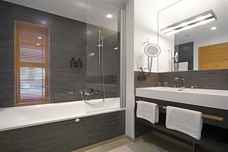 This hotel stands within a grand castle estate overlooking Tegernsee Lake, and offers a wellness area, outdoor and indoor pools and a sauna. Guests enjoy free Wi-Fi and free parking. Das Tegernsee offers rooms within the Art Nouveau-style Sengerschloß castle and in its neighboring buildings. All rooms include a modern bathroom with bathrobes and hairdryer. The hotel's Senger restaurant serves regional and international dishes. In warm weather, guests can eat on the terrace overlooking the lake and the Alps. Das Tegernsee also features a beer garden and a Baroque hall available for events. Guests can book professional massages and beauty treatments in Das Tegernsee’s spa. Rental bicycles are also available. The Sengerschloß castle on Das Tegernsee’s grounds has hosted personalities including Count Metternich and the Queen of Spain.