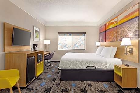 This Days Inn is only a 5-minute drive from Kansas City International Airport and offers a shuttle service at charge ($ 5.00 airport shuttle toll fee) per trip). It features an indoor pool and free WiFi in all rooms and public areas. hotel is 100% non-smoking. Guest rooms at Days Inn by Wyndham Kansas City International Airport are furnished with a work desk and a lounge chair. Each includes cable TV, Limited item a hairdryer. The KCI Expo Convention Center is 0.9 mi from Days Inn by Wyndham Kansas City International Airport. Zonarosa shopping and entertainment district is a 10-minute drive from the hotel, and Downtown Kansas City is within a 20-minute drive.