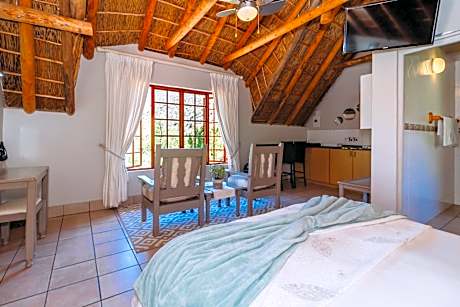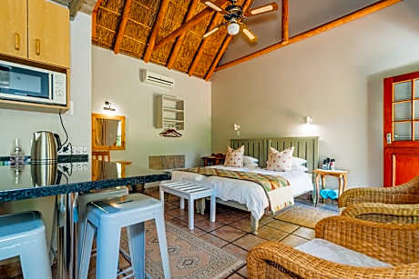 This thatched and air-conditioned room is located on the first floor and and has a fully equipped kitchenette and dining area. The private bathroom has a shower.